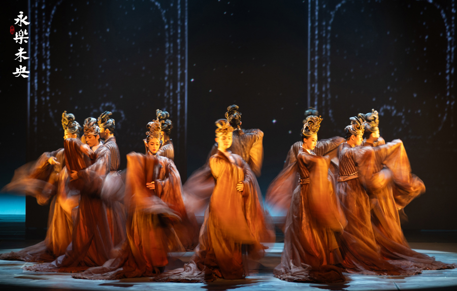 《永乐未央》历经两年半精心打磨,中国东方演艺集团80后、90后为主的主创团队多次深入永乐宫实地采风。从永乐宫的斗拱飞檐到《朝元图》的绚丽色彩,从孔雀蓝釉的莹润光泽到迁建工程的举世瞩目,《永乐未央》将原本静置在博物馆、留存于历史中的文物、技艺与记忆,转化为富有情感与故事性的舞蹈语言,以“守岁华,共丹青”为传承主题,彰显中华文脉生生不息的精神力量。