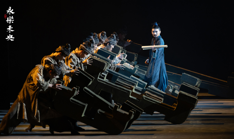 10月3日至5日,舞剧《永乐未央》在北京保利剧院成功首演。三场演出提前售罄,“神仙舞剧”“壁画会跳舞”“古建复活”等话题持续刷屏。《永乐未央》以1950年代永乐宫迁建工程为叙事线索,巧妙将“古建、壁画、琉璃、传承”四重美学维度融入剧情,让沉睡的文物在舞蹈艺术中“活”了起来。在“时空同频”的舞台上,当代建筑师与古代督建者心神交汇,见证动荡历史中“立观度人,时不可失”的建宫宏愿;被拒之门外的元代女画工以生活为笔、想象为卷,将自我生命祈愿绘入《朝元图》的玉女仙班,与当代前来临摹壁画的美术师夙愿共鸣;执着技艺的琉璃匠师与七百余岁的老角神在如梦如幻的陪伴中,共同复原了失传已久的孔雀蓝釉琉璃制法,延续守护的誓言;平均年龄不到三十岁的迁建者们以十年青春“和三门峡争先,和黄河水赛跑”,众手托举榫卯彩画,终使永乐宫重获新生。