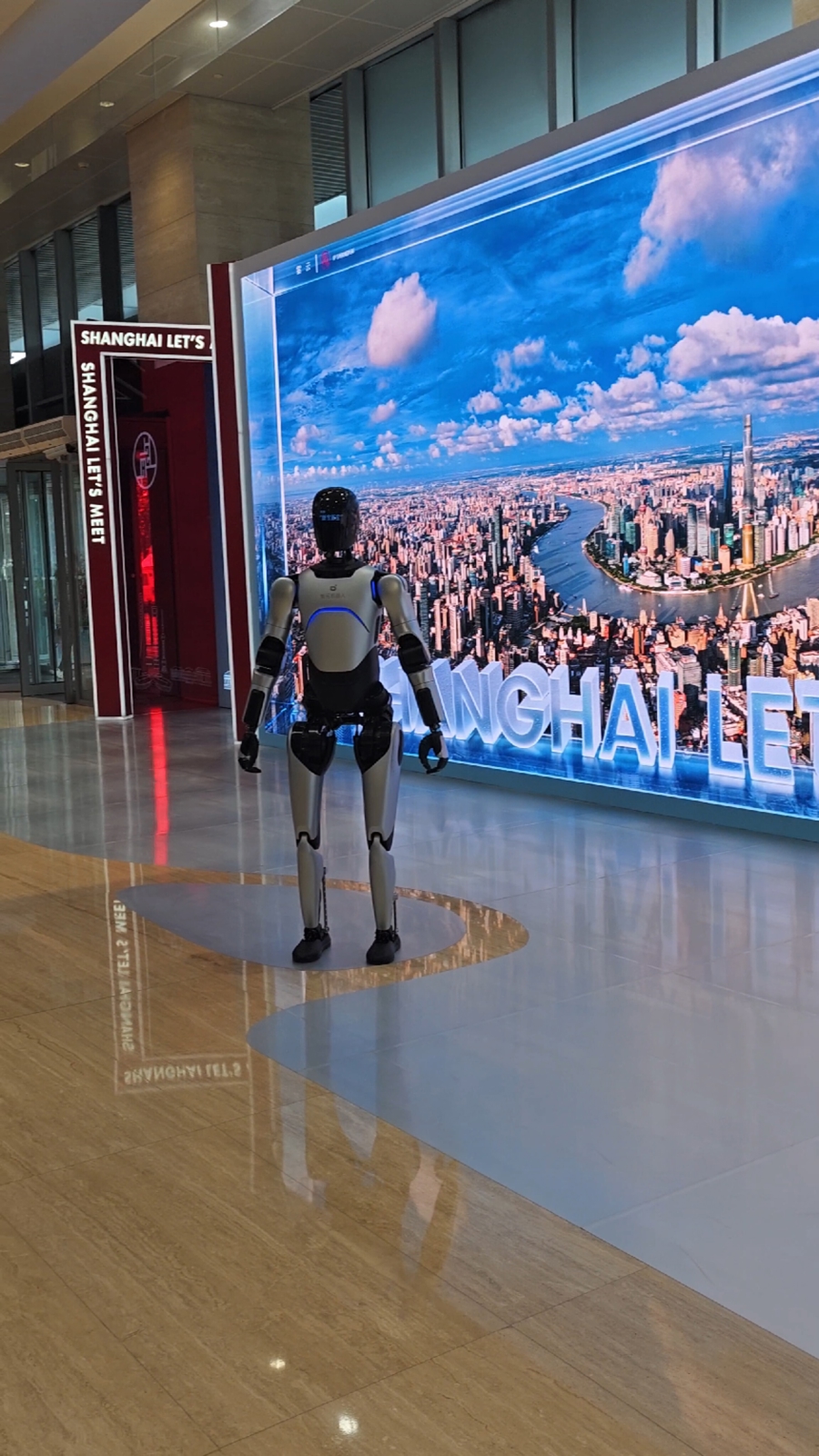 新闻中心内,科技元素随处可见。智元机器人旗下的“远征A2”“灵犀X2”等三款人形交互机器人作为“AI志愿者”亮相,在现场提供咨询、导览、物品分发等服务,展现了具身智能在实战场景中的成熟应用。