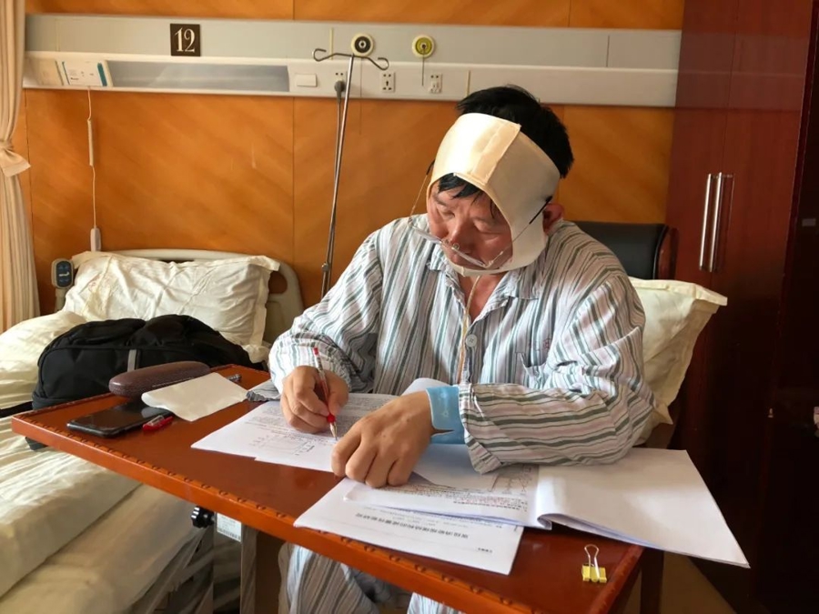 几位老师不约而同提及令他们至今仍感佩不已的是,多年前的一幕情景。2018年8月,李国强教授在医院接受一个头颈部手术。手术第二天,头部扎着纱布的李老师就坐在病床边,一边打着吊针,一边拿着红笔给学生修改论文。出院后的第二天,他的身影就出现在了研究室的讨论会上。