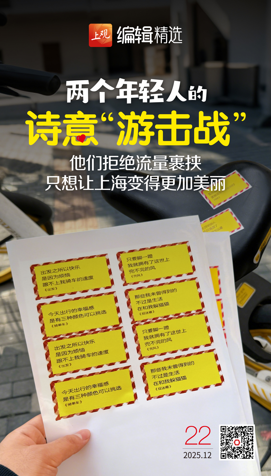 张馨月说:“我们这代年轻人从不缺表达的热情,也从不乏改变世界的勇气,只是更愿意用一种温和而务实的方式,去消解城市生活里的浮躁与戾气。我不想让这份纯粹的诗意变味,这只是一个开始,我的行为只是唤起更多人加入,将平时的生活感悟变成诗句,再放进更多角落的单车上,让城市变得更美丽。”