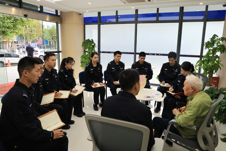 “那时我们不知道明天会怎样,但我们都清楚地知道为什么而战——为了我们的家园,为了身后的父老乡亲。”颜老娓娓道来,用朴实无华却饱含深情的语言,讲述着那段血与火的岁月:机智带领儿童团与敌人周旋,与战友们并肩作战……一个个真实的战斗故事,一幕幕惊心动魄的场景,让在场的青年民警仿佛置身于那个烽火连天的年代,深刻感受到革命先辈视死如归的爱国情怀和对人民事业的无限忠诚。