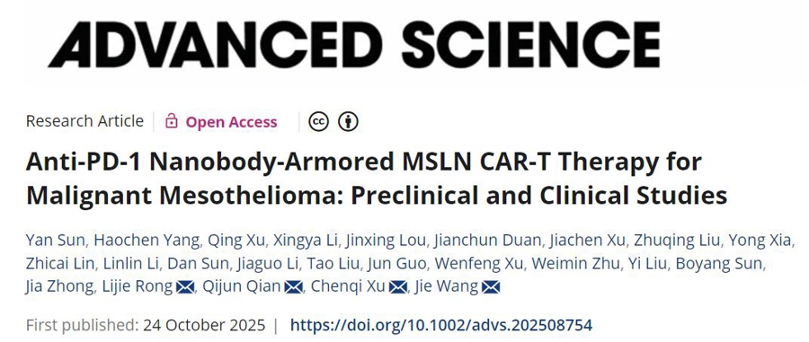 该临床研究成果已发表在最新一期国际学术期刊《先进科学》。