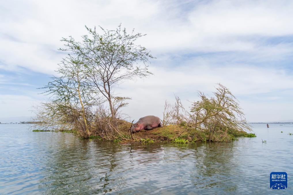 2月1日,在肯尼亚纳库鲁郡,一只河马在奈瓦沙湖中一座小岛上休息。新华社记者 谢剑飞 摄