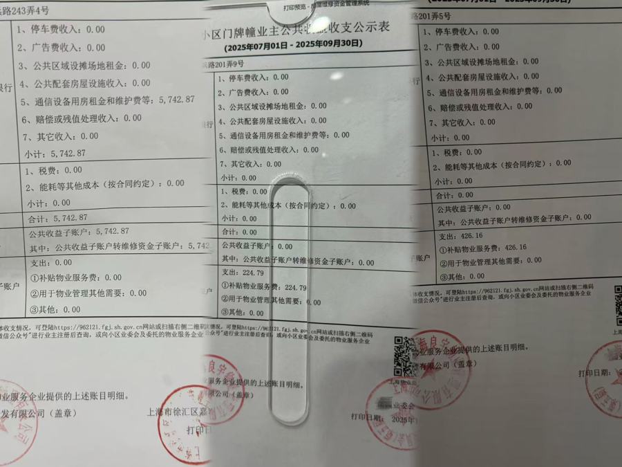 该物业经理表示,安装电梯广告是为了给小区增加一些收益,“当时好多人没拿到产证,就不交物业费,觉得自己不是正式业主。考虑到路面维修、绿化修剪都需要钱,就投放了广告增加收入,现在除了物业费外,就主要靠停车费和广告。”物业方也强调,他们有义务公布公共收益,但不能泄露合同信息。“公共收益的账单我们会定期贴在公告栏,正式业主也能通过‘上海智慧物业’二维码查看。只是具体的合同明细涉及商业机密,不适合对外展示。”