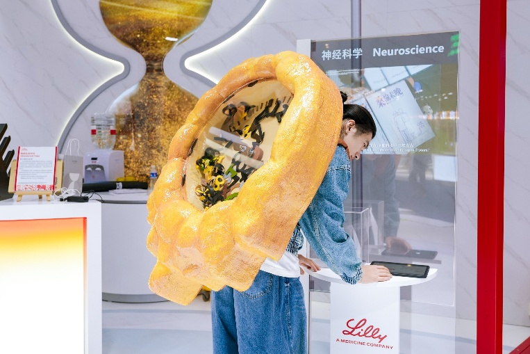 我国已迈入深度老龄化社会,《中国阿尔茨海默病报告2025》显示,我国现有阿尔茨海默病及其他痴呆症患者近1700万。本届进博会,礼来不仅三度带来“记忆咖啡馆”,特邀老年志愿者担任咖啡师,以温暖互动传递关注。与此同时,还联合艺术创作者张大强的白日梦,共同呈现公益艺术作品《被搅乱的时间》。通过这一艺术表达,礼来希望唤起公众对阿尔茨海默病的更深层认知,倡导把握黄金干预期,推动早诊早治,为患者和家庭赢得更多有序时光。