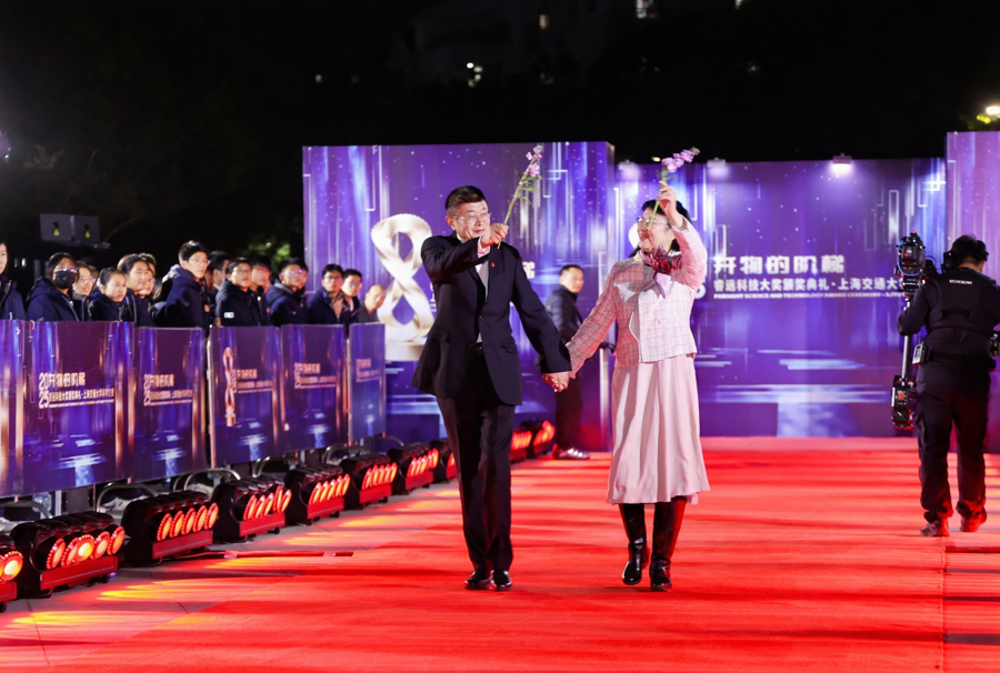 同为第三届睿远科技大奖获得者的张荻院士、毛军发院士也与夫人携手入场,相携相伴的身影,成为当晚红毯上一道兼具温度与风采的风景,互相支持的身影,展示着世间最美好的情感。