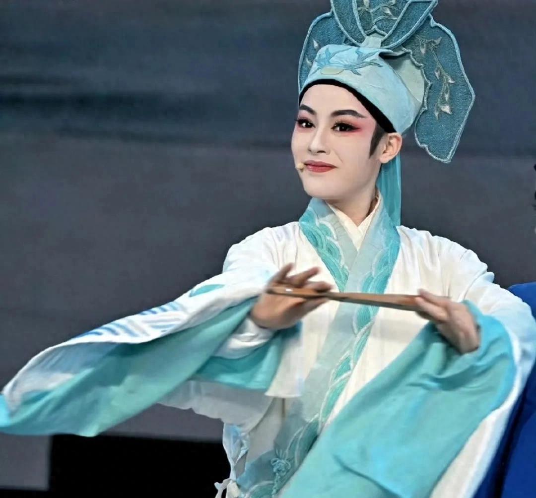 不同于以往戏曲书生的温吞感,陈丽君的梁山伯自带“少年感buff”:眉峰一挑是藏不住的英气,眼波流转时又带着点不自知的魅惑,清俊骨相配挺拔身段,往那一站就自带古典氛围感。更绝的是她的表演,扇子功耍得灵动翻飞,水袖甩得利落潇洒,把梁山伯得知能娶祝英台的狂喜,从懵懂到雀跃的情绪递进全靠微表情拿捏,最后一句高亢唱腔直接点燃全场,难怪被夸“书生颜值天花板”。