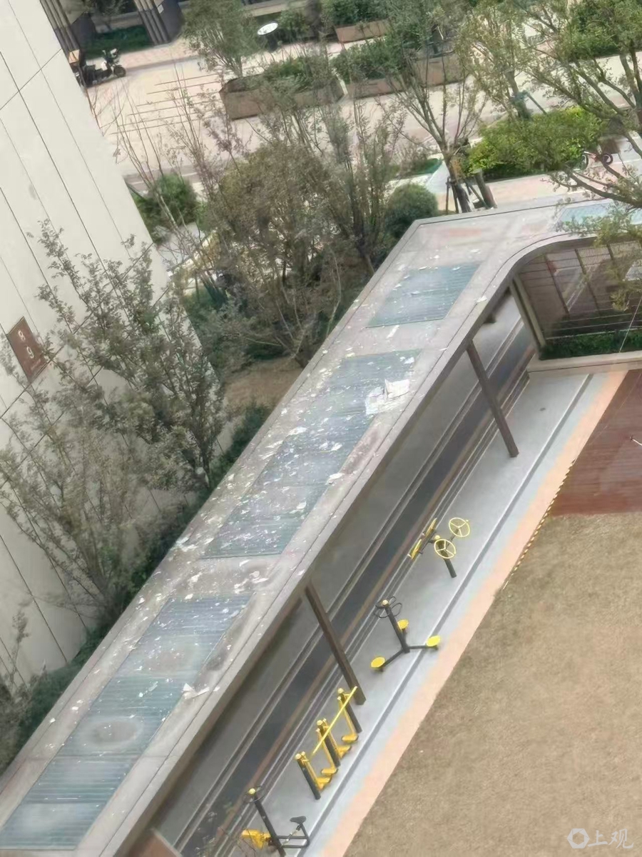 图说:连廊道玻璃顶棚上都有不少坠落碎块 采访对象供图